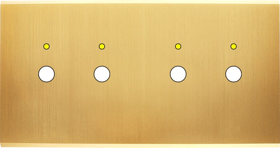 Laiton massif 5mm - 151x80mm, horizontal ou vertical - 12 finitions disponibles et plus de 50 fonctions - Montage sur boîtiers standards profondeur 50mm - Montage aimanté ou à vis