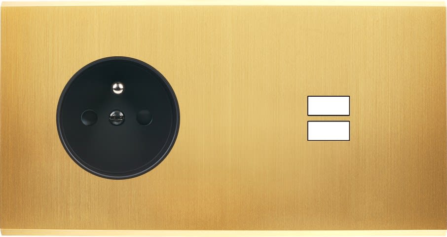 Laiton massif 5mm - 151x80mm, horizontal ou vertical - 12 finitions disponibles et plus de 50 fonctions - Montage sur boîtiers standards profondeur 50mm - Montage aimanté ou à vis