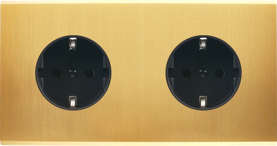 Laiton massif 5mm - 151x80mm, horizontal ou vertical - 12 finitions disponibles et plus de 50 fonctions - Montage sur boîtiers standards profondeur 50mm - Montage aimanté ou à vis