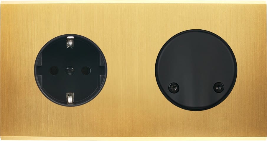 Laiton massif 5mm - 151x80mm, horizontal ou vertical - 12 finitions disponibles et plus de 50 fonctions - Montage sur boîtiers standards profondeur 50mm - Montage aimanté ou à vis
