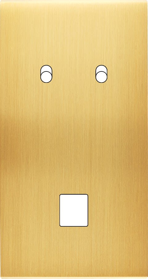 Laiton massif 5mm - 151x80mm, horizontal ou vertical - 12 finitions disponibles et plus de 50 fonctions - Montage sur boîtiers standards profondeur 50mm - Montage aimanté ou à vis