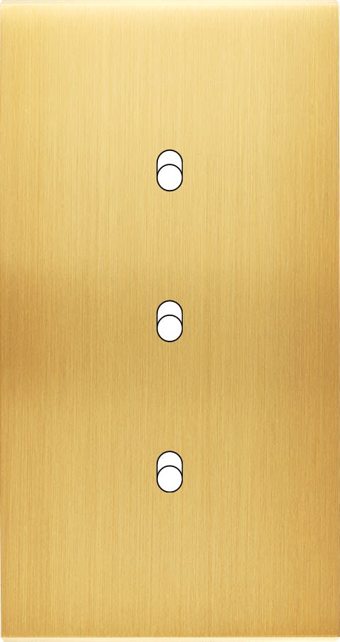 Laiton massif 5mm - 151x80mm, horizontal ou vertical - 12 finitions disponibles et plus de 50 fonctions - Montage sur boîtiers standards profondeur 50mm - Montage aimanté ou à vis