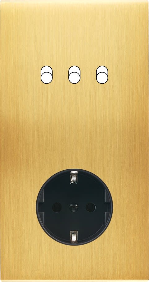 Laiton massif 5mm - 151x80mm, horizontal ou vertical - 12 finitions disponibles et plus de 50 fonctions - Montage sur boîtiers standards profondeur 50mm - Montage aimanté ou à vis