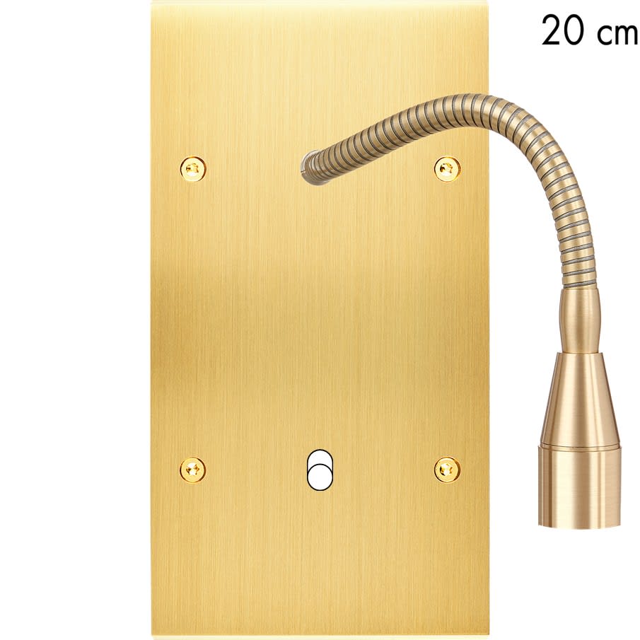 Laiton massif 5mm - 80x151mm - Montage sur boîtiers d'encastrement standards profondeur 50mm - Façade à vis - Compatible avec les mécanismes renforcés MODELEC - Transformateur 220-12V inclus - LED Blanc chaud 2700K - Consommation LED: 2 Watts - 140/170 Lumens