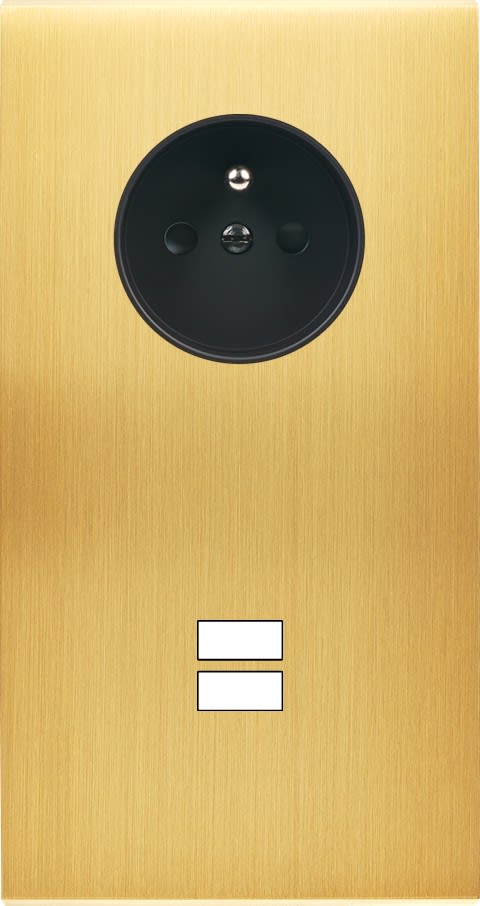 Façade Confidence en laiton massif finition Satiné double verticale prise de courant 2P+T ouverture pour chargeur double USB