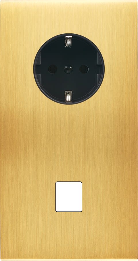 Façade Confidence en laiton massif finition Satiné double verticale 1 prise Schuko 1 MEDIA