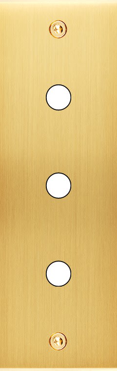 Laiton massif 5mm - 40x125mm - 12 finitions disponibles - Montage sur boîtiers d'encastrement standards ⌀32mm profondeur 50mm - Façade à vis - Compatible avec les mécanismes renforcés MODELEC