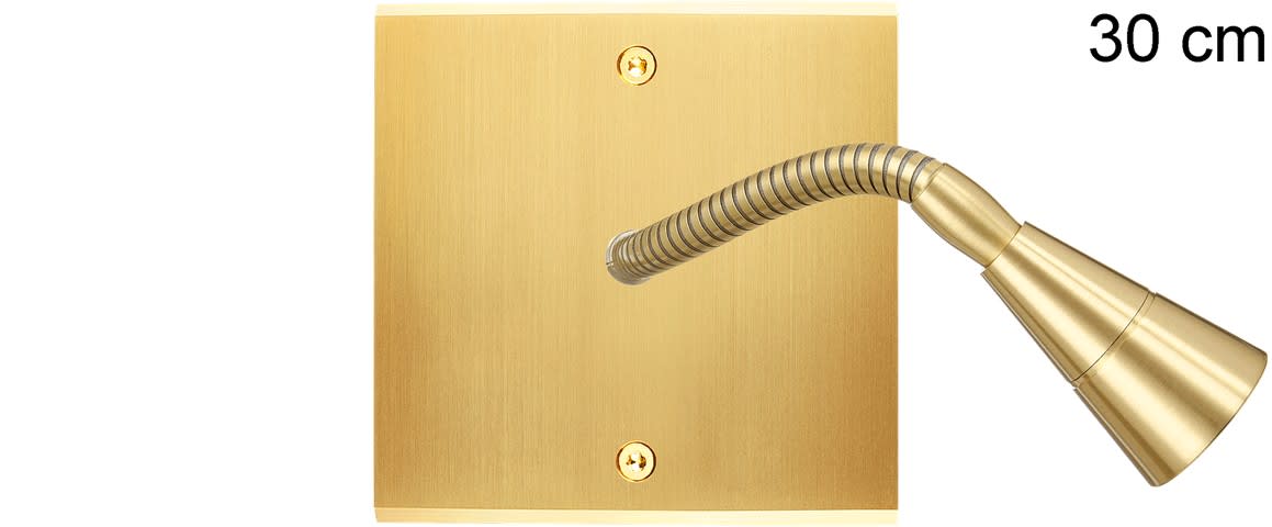 Laiton massif 5mm - 80x80mm - Montage sur boîtiers d'encastrement standards profondeur 50mm - Façade à vis - Compatible avec les mécanismes renforcés MODELEC - Transformateur 220-12V inclus - LED Blanc chaud 2700K - Consommation LED: 2 Watts - 140/170 Lumens