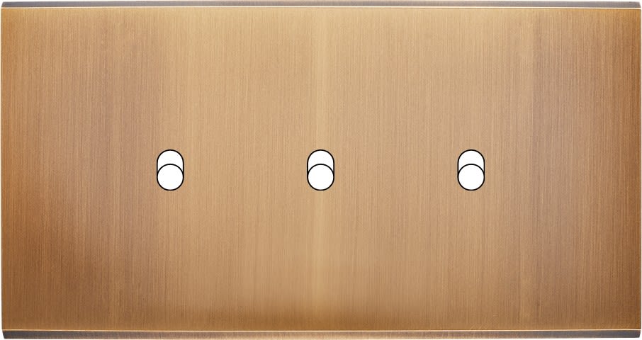 Laiton massif 5mm - 151x80mm, horizontal ou vertical - 12 finitions disponibles et plus de 50 fonctions - Montage sur boîtiers standards profondeur 50mm - Montage aimanté ou à vis