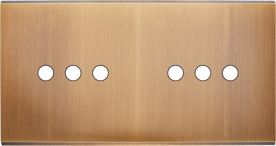 Façade Confidence en laiton massif finition Vieux Bronze double horizontale 6 PUSH. Façade magnétique. Dimensions 151x80x5mm. Fabriqué en France.