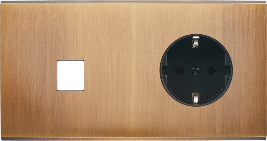 Façade Confidence en laiton massif finition Vieux Bronze double horizontale 1 média prise schuko 2P+T