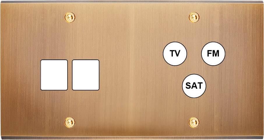 Laiton massif 5mm - 151x80mm, horizontal ou vertical - 12 finitions disponibles et plus de 50 fonctions - Montage sur boîtiers standards profondeur 50mm - Façade à vis
