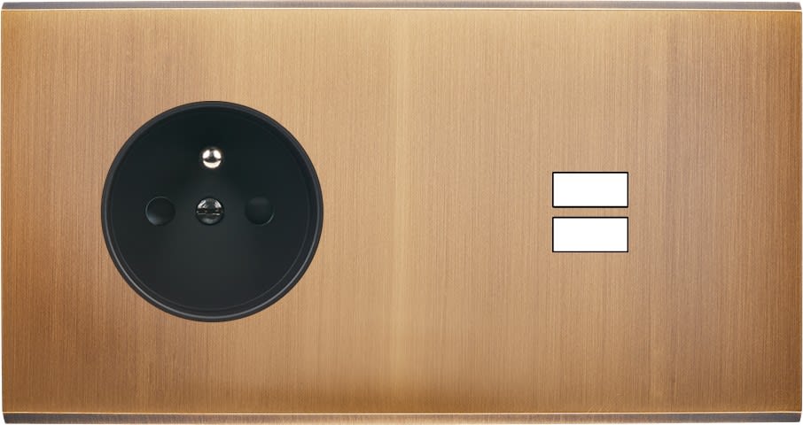 Façade Confidence en laiton massif finition Vieux Bronze double horizontale prise de courant 2P+T ouverture pour chargeur double USB