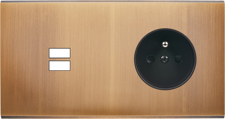 Façade Confidence en laiton massif finition Vieux Bronze double horizontale ouverture pour chargeur double USB prise de courant 2P+T