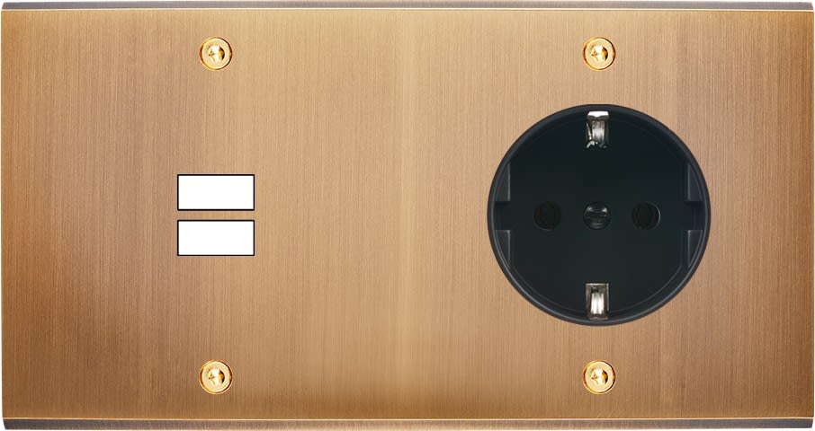 Façade Confidence en laiton massif finition Vieux Bronze double horizontale ouverture pour chargeur double USB prise schuko 2P+T à vis