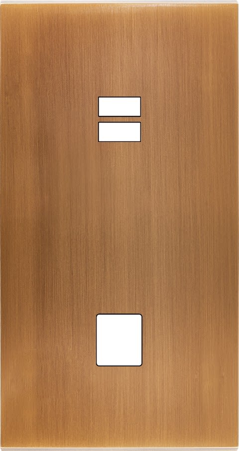 Laiton massif 5mm - 151x80mm, horizontal ou vertical - 12 finitions disponibles et plus de 50 fonctions - Montage sur boîtiers standards profondeur 50mm - Montage aimanté ou à vis