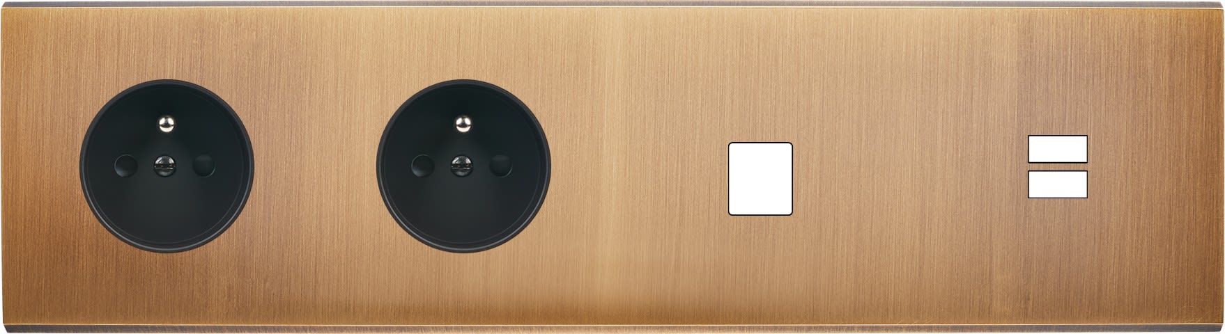 Façade Confidence en laiton massif finition Vieux Bronze quadruple horizontale prise de courant 2P+T prise de courant 2P+T 1 média ouverture pour chargeur double USB