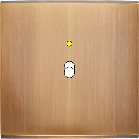 Façade Confidence en laiton massif finition Vieux Bronze simple 1 basculeur+LED magnétique. Dimensions : 80x80x5mm, deux chanfreins biseautés. Fabriqué en France.