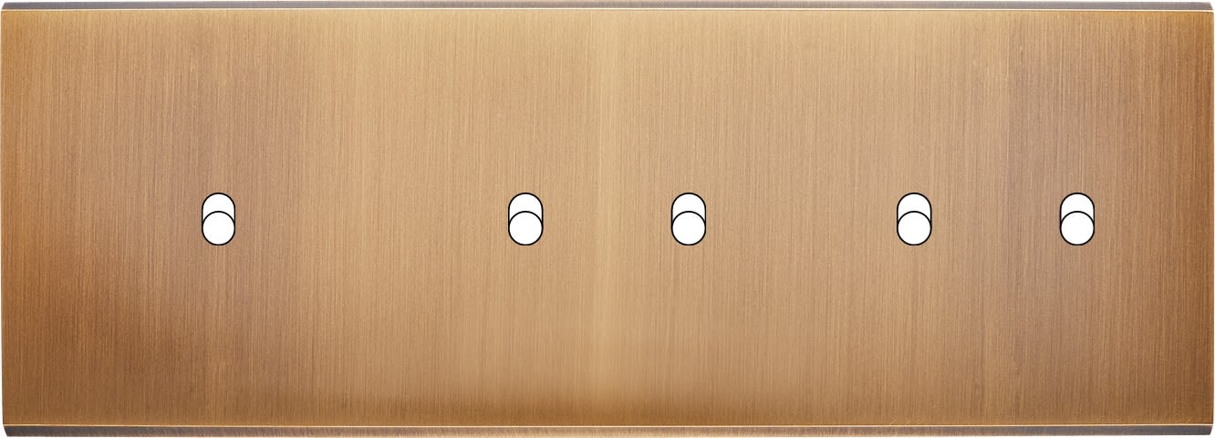 Laiton massif 5mm - 222x80mm, horizontal ou vertical - 12 finitions disponibles et plus de 50 fonctions - Montage sur boîtiers standards profondeur 50mm - Montage aimanté ou à vis
