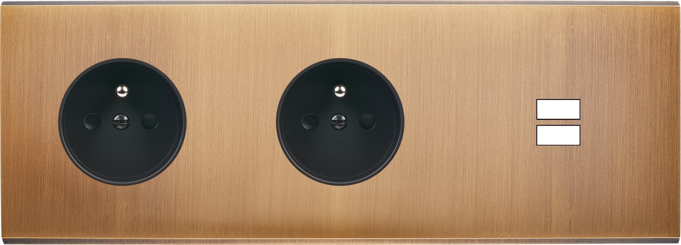 Façade Confidence en laiton massif finition Vieux Bronze triple horizontale prise de courant 2P+T prise de courant 2P+T ouverture pour chargeur double USB