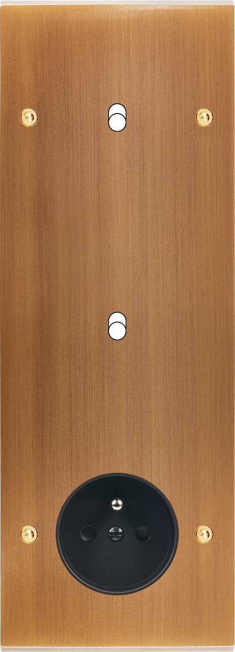 Laiton massif 5mm - 222x80mm, horizontal ou vertical - 12 finitions disponibles et plus de 50 fonctions - Montage sur boîtiers standards profondeur 50mm - Façade à vis