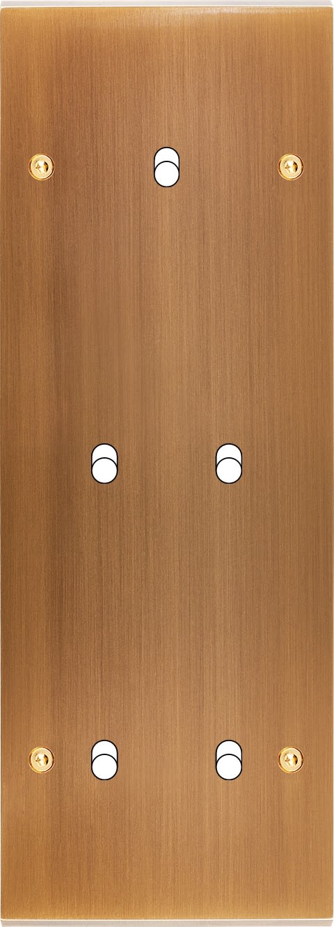 Façade Confidence en laiton massif finition Vieux Bronze triple verticale 1 basculeur 2 basculeurs 2 basculeurs à vis. Dimensions : 80x222x5mm, deux chanfreins biseautés. Fabriqué en France.