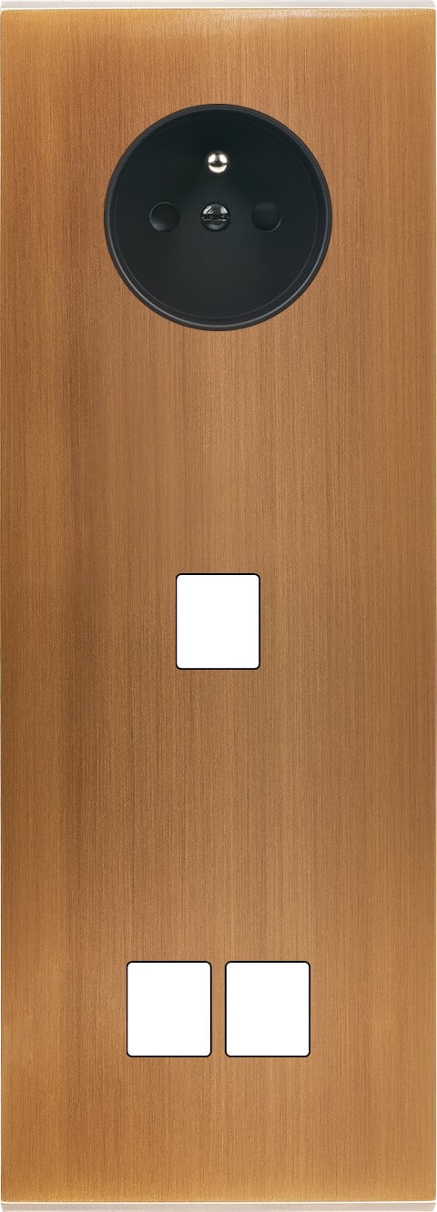 Laiton massif 5mm - 222x80mm, horizontal ou vertical - 12 finitions disponibles et plus de 50 fonctions - Montage sur boîtiers standards profondeur 50mm - Montage aimanté ou à vis