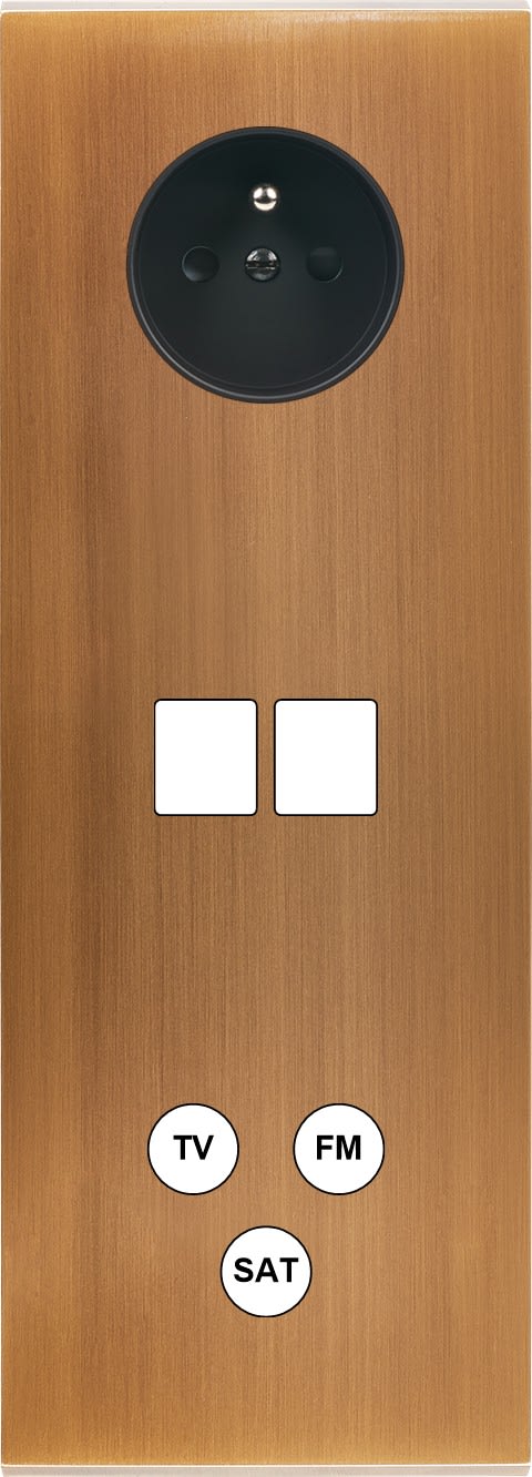 Laiton massif 5mm - 222x80mm, horizontal ou vertical - 12 finitions disponibles et plus de 50 fonctions - Montage sur boîtiers standards profondeur 50mm - Montage aimanté ou à vis
