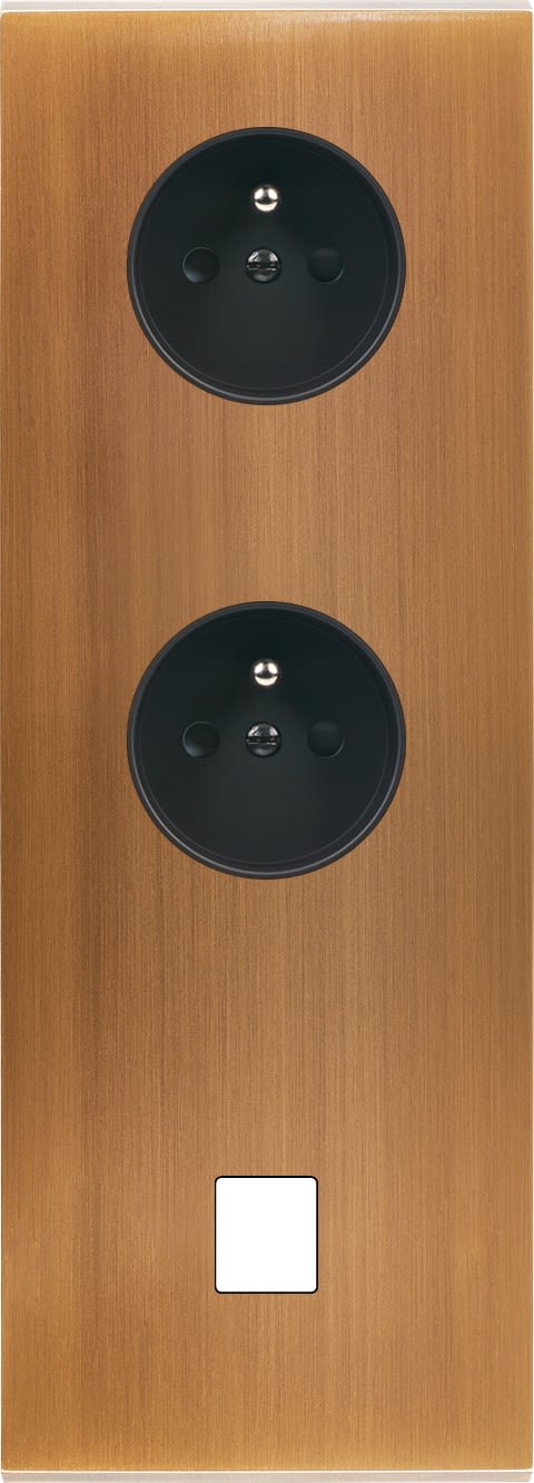 Laiton massif 5mm - 222x80mm, horizontal ou vertical - 12 finitions disponibles et plus de 50 fonctions - Montage sur boîtiers standards profondeur 50mm - Montage aimanté ou à vis