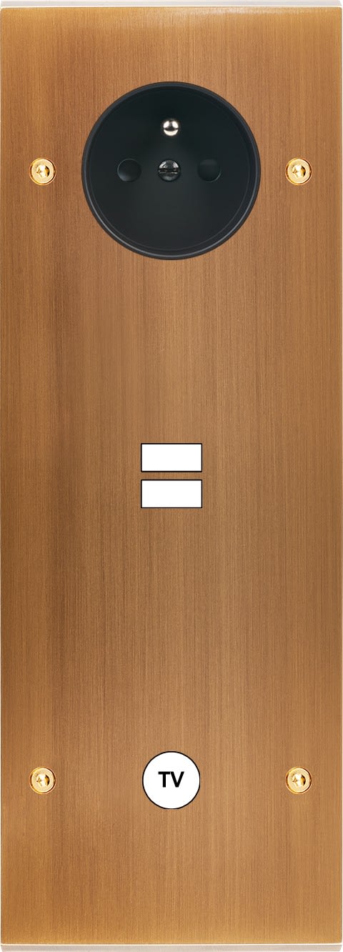 Laiton massif 5mm - 222x80mm, horizontal ou vertical - 12 finitions disponibles et plus de 50 fonctions - Montage sur boîtiers standards profondeur 50mm - Façade à vis