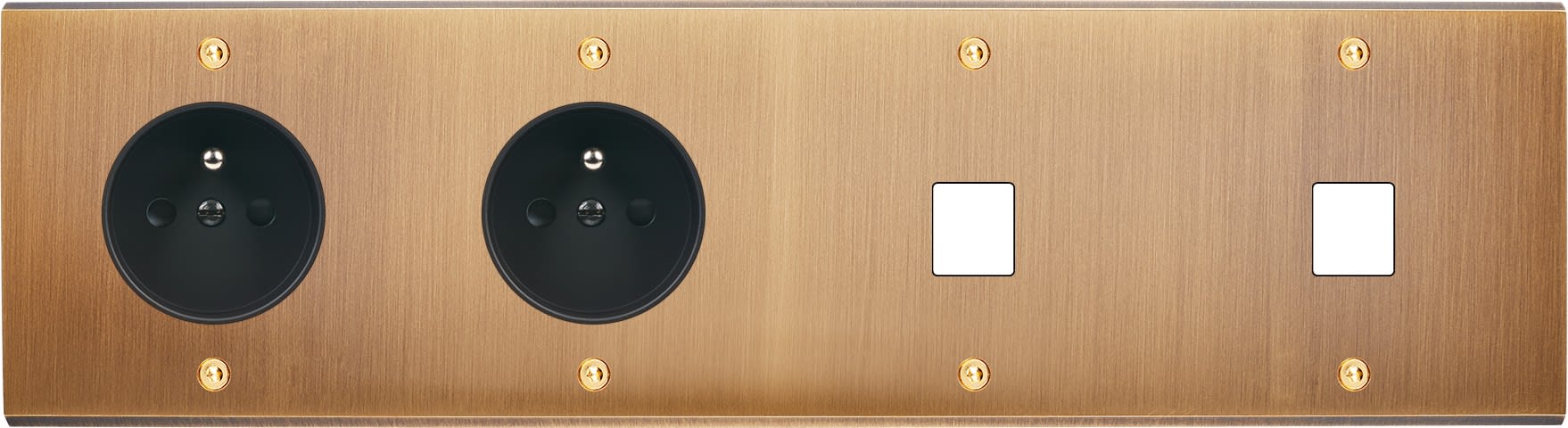 Laiton massif 5mm - 293x80mm - - 12 finitions disponibles et plus de 50 fonctions - Montage sur boîtiers standards profondeur 50mm - Façade à vis