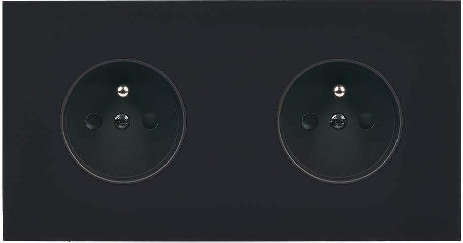 Façade Désir Noir Mat double Horizontale prise 2P+T prise 2P+T. Pose à clip. Dimensions : 151x80x6mm. Fabriqué en France