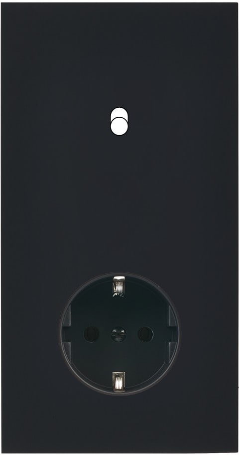 Façade Désir Noir Mat double Verticale 1 levier 1 prise Schuko. Pose à clip. Dimensions : 80x151x6mm. Fabriqué en France