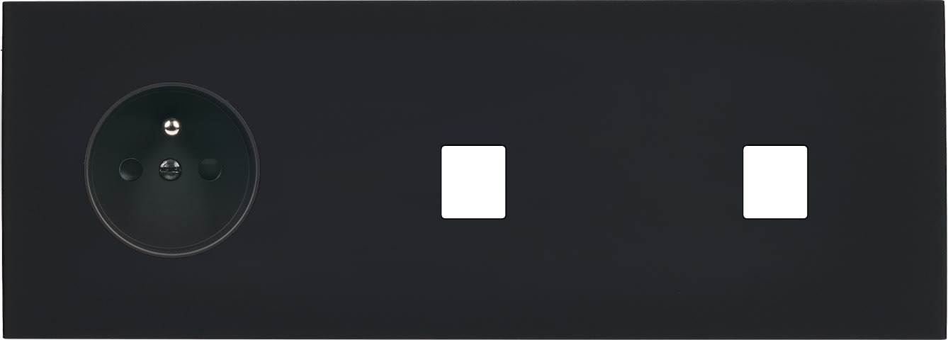 Façade Désir Noir Mat triple Horizontale prise 2P+T 1 média 1 média. Pose à clip. Dimensions : 222x80x6mm. Fabriqué en France