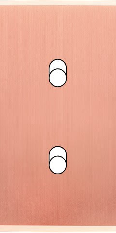 Façade étroite Confidence en laiton massif finition Cuivre Satiné 2 basculeurs. Dimensions : 40x80x5mm, deux chanfreins biseautés. Fabriqué en France.