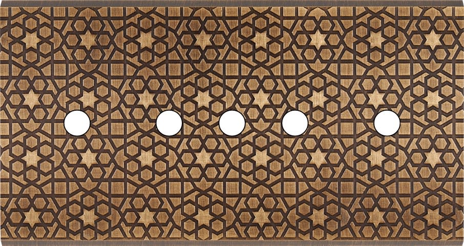 Façade Fascination en laiton massif finition Atlas double horizontale 5 PUSH magnétique. Dimensions : 151x80x5mm, deux chanfreins biseautés. Fabriqué en France, dans les ateliers de Steaven Richard.