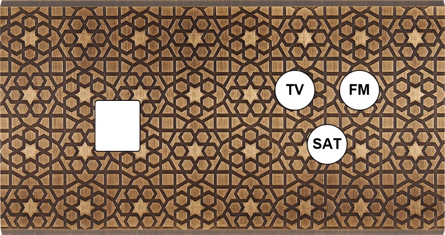 Façade Fascination en laiton massif finition Atlas double horizontale 1 MEDIA TV-FM-SAT magnétique. Dimensions : 80x80x5mm, deux chanfreins biseautés. Fabriqué en France, dans les ateliers de Steaven Richard.