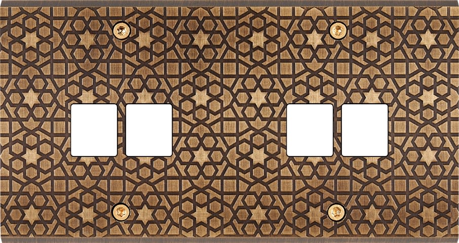 Façade Fascination en laiton massif finition Atlas double horizontale 2 média 2 média à vis. Dimensions : 151x80x5mm, deux chanfreins biseautés. Fabriqué en France, dans les ateliers de Steaven Richard.