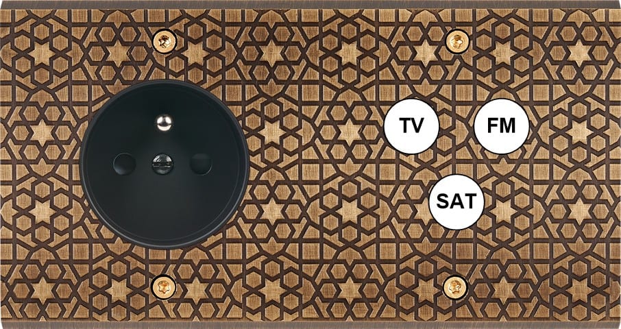 Laiton massif 5mm - Façade format double horizontale 151x80mm - 6 finitions disponibles et plus de 50 fonctions - Montage sur boîtiers standards profondeur 50mm - Façade à vis - Compatible avec les mécanismes MODELEC standards à connexion automatique