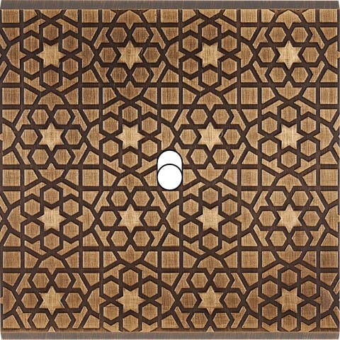 Façade Fascination en laiton massif finition Atlas simple 1 basculeur magnétique. Dimensions : 80x80x5mm, deux chanfreins biseautés. Fabriqué en France, dans les ateliers de Steaven Richard.