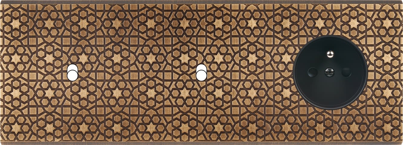 Laiton massif 5mm - Façade format triple horizontal 322x80mm - 6 finitions disponibles et plus de 50 fonctions - Montage sur boîtiers standards profondeur 50mm - Façade magnétique - Compatible avec les mécanismes MODELEC renforcés ou standards à connexion automatique