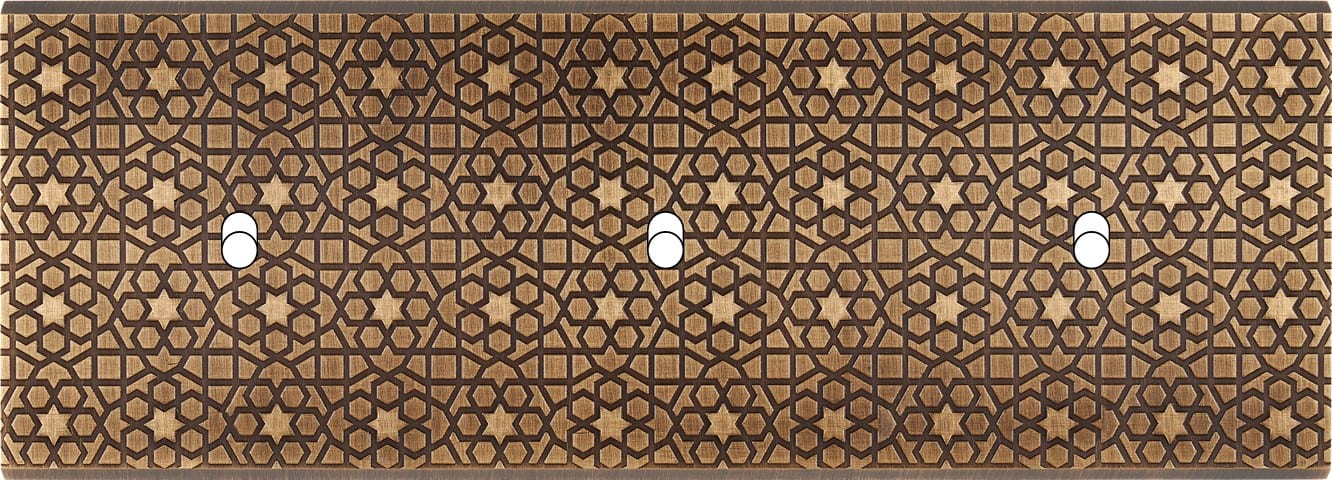 Façade Fascination en laiton massif finition Atlas triple horizontale 1 basculeur 1 basculeur 1 basculeur magnétique. Dimensions : 222x80x5mm, deux chanfreins biseautés. Fabriqué en France, dans les ateliers de Steaven Richard.