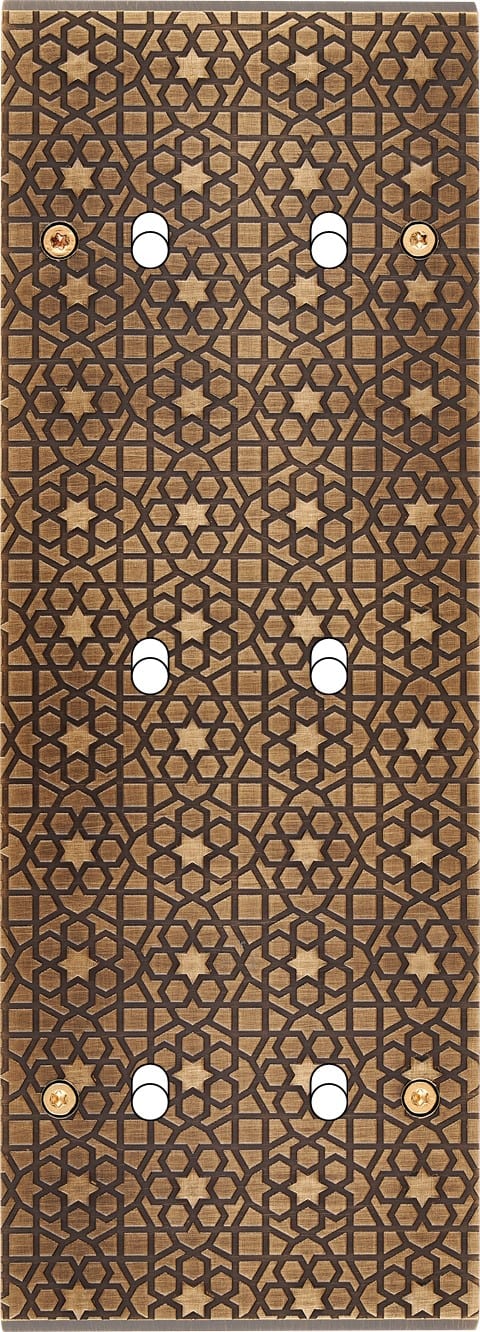 Façade Fascination en laiton massif finition Atlas triple verticale 2 basculeurs 2 basculeurs 2 basculeurs à vis. Dimensions : 80x222x5mm, deux chanfreins biseautés. Fabriqué en France, dans les ateliers de Steaven Richard.