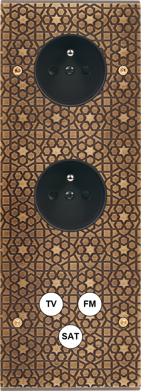 Laiton massif 5mm - Format triple verticale 80x222mm - 6 finitions disponibles et plus de 50 fonctions - Montage sur boîtiers standards profondeur 50mm - Façade à vis
