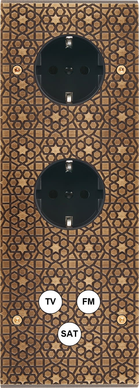 Laiton massif 5mm - Façade format triple vertical 80x222mm - 6 finitions disponibles et plus de 50 fonctions - Montage sur boîtiers standards profondeur 50mm - Façade à vis - Compatible avec les mécanismes MODELEC renforcés ou standards à connexion automatique