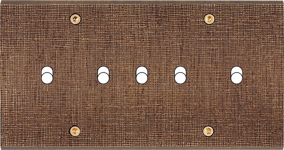 Façade Confidence en laiton massif finition Cuivre Satiné double horizontale 5 basculeurs à vis. Dimensions : 151x80x5mm, deux chanfreins biseautés. A associer à nos leviers en laiton massif. Fabriqué en France.