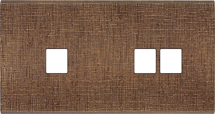 Façade Fascination en laiton massif finition Coslan double horizontale 1 MEDIA 2 MEDIA magnétique. Dimensions : 80x80x5mm, deux chanfreins biseautés. Fabriqué en France, dans les ateliers de Steaven Richard.
