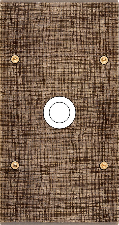 Façade Fascination en laiton massif finition Coslan double verticale 1 gros bouton poussoir PUSH à vis. Dimensions : 80x151x5mm, deux chanfreins biseautés. Fabriqué en France, dans les ateliers de Steaven Richard.