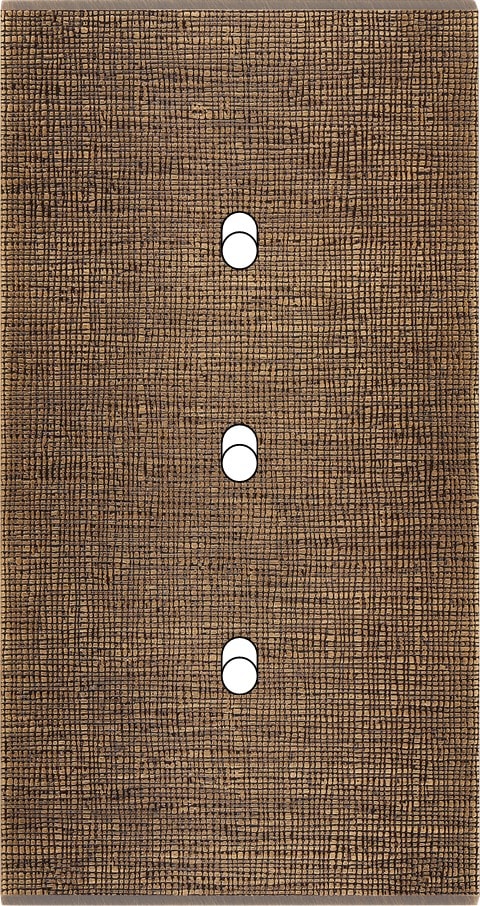 Façade Fascination en laiton massif finition Coslan double verticale 3 basculeurs magnétique. Dimensions : 80x151x5mm, deux chanfreins biseautés. Fabriqué en France, dans les ateliers de Steaven Richard.