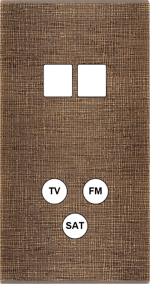 Façade Fascination en laiton massif finition Coslan double verticale 2 MEDIA TV-FM-SAT magnétique. Dimensions : 151x80x5mm, deux chanfreins biseautés. Fabriqué en France, dans les ateliers de Steaven Richard.